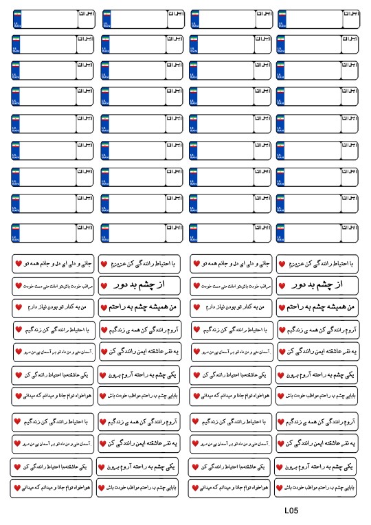 برچسب پلاک و نوشته ماشین کد L05